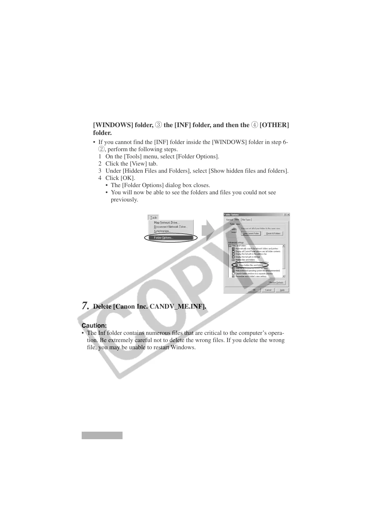 • If you cannot find the [INF] folder inside the [WINDOWS] folder in step 6-