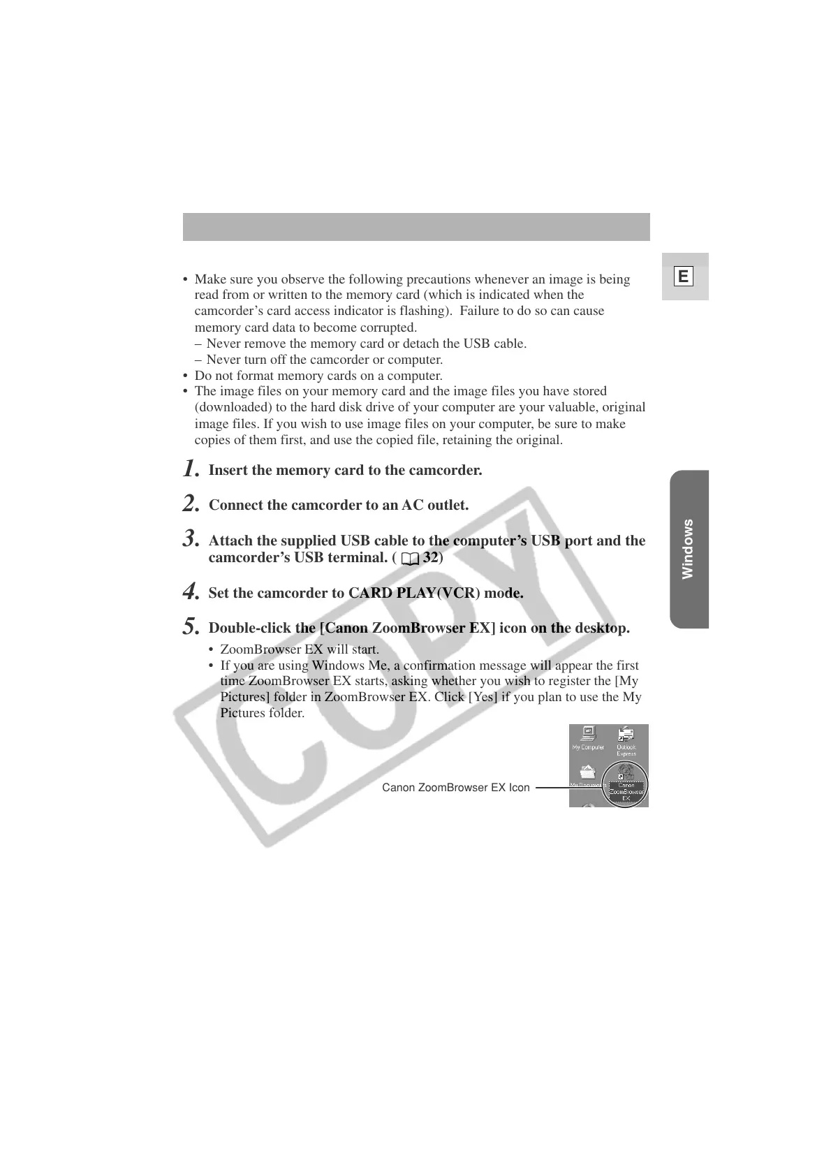 camcorder’s card access indicator is flashing). Failure to do so can cause