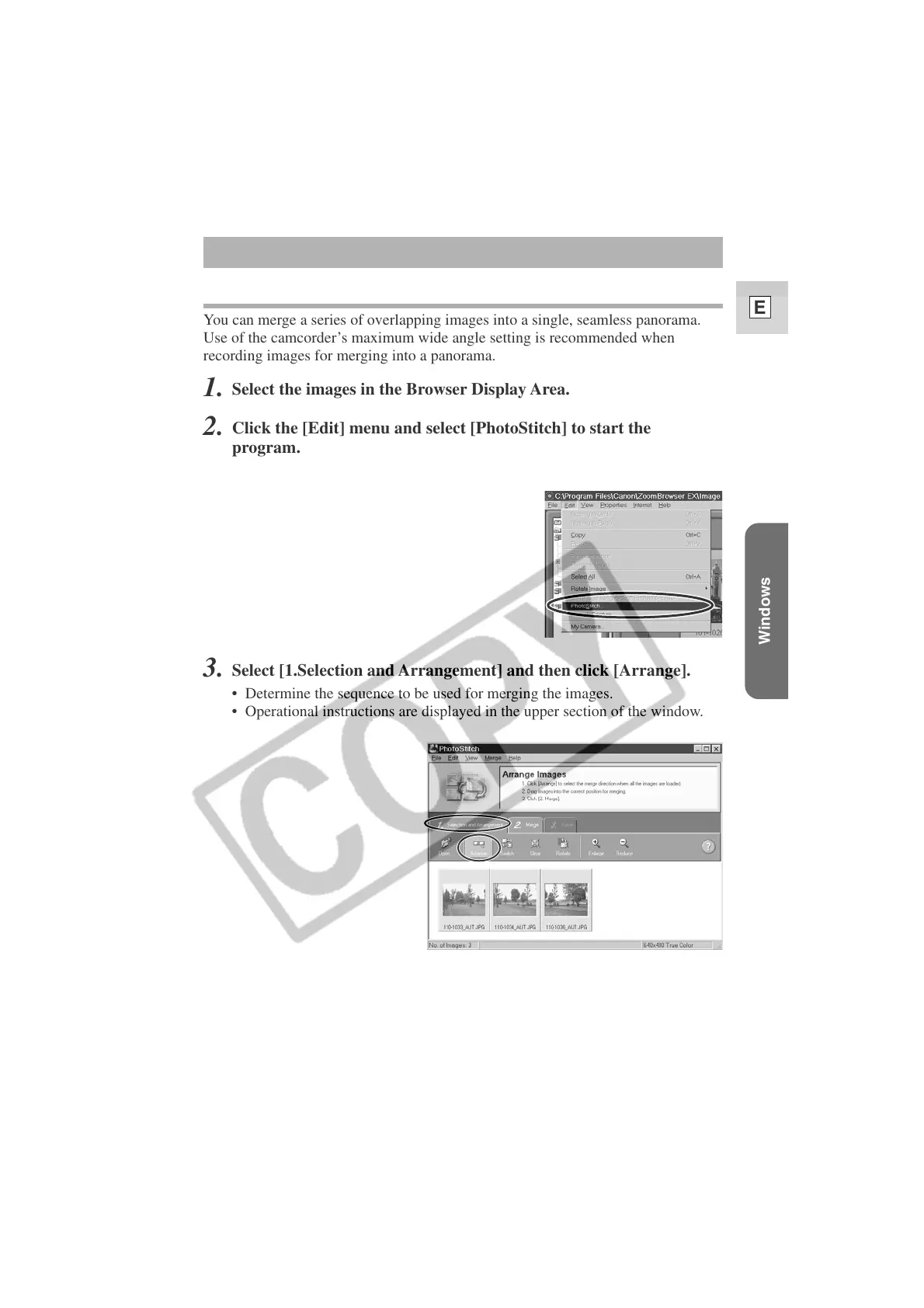 Click the [Edit] menu and select [PhotoStitch] to start the