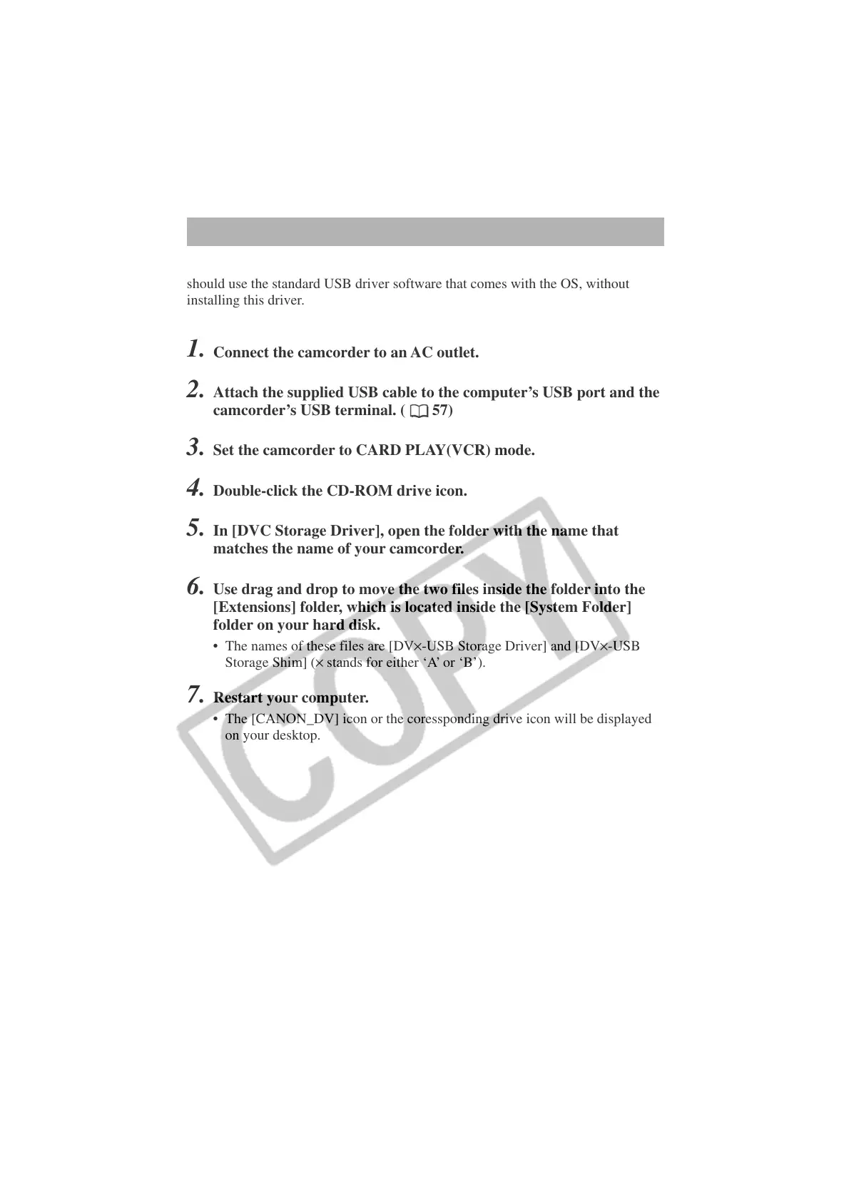 • The names of these files are [DV×-USB Storage Driver] and [DV×-USB