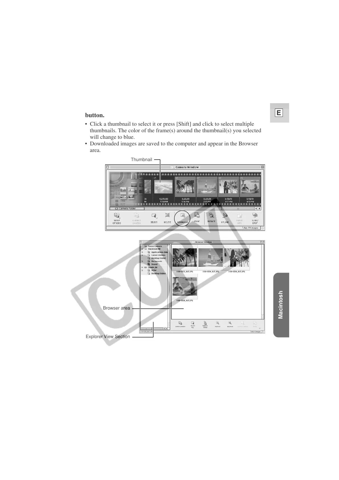 4. Select images in the Camera window and click the [Download]