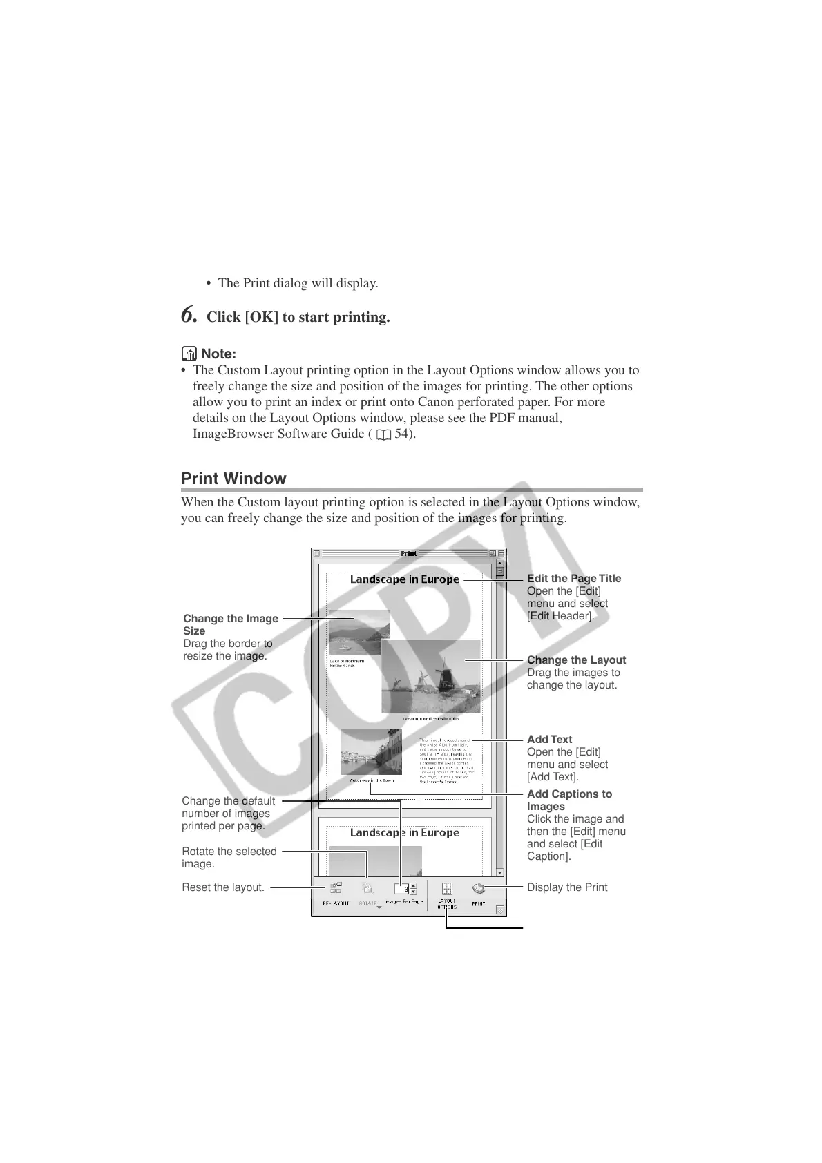 freely change the size and position of the images for printing. The other options