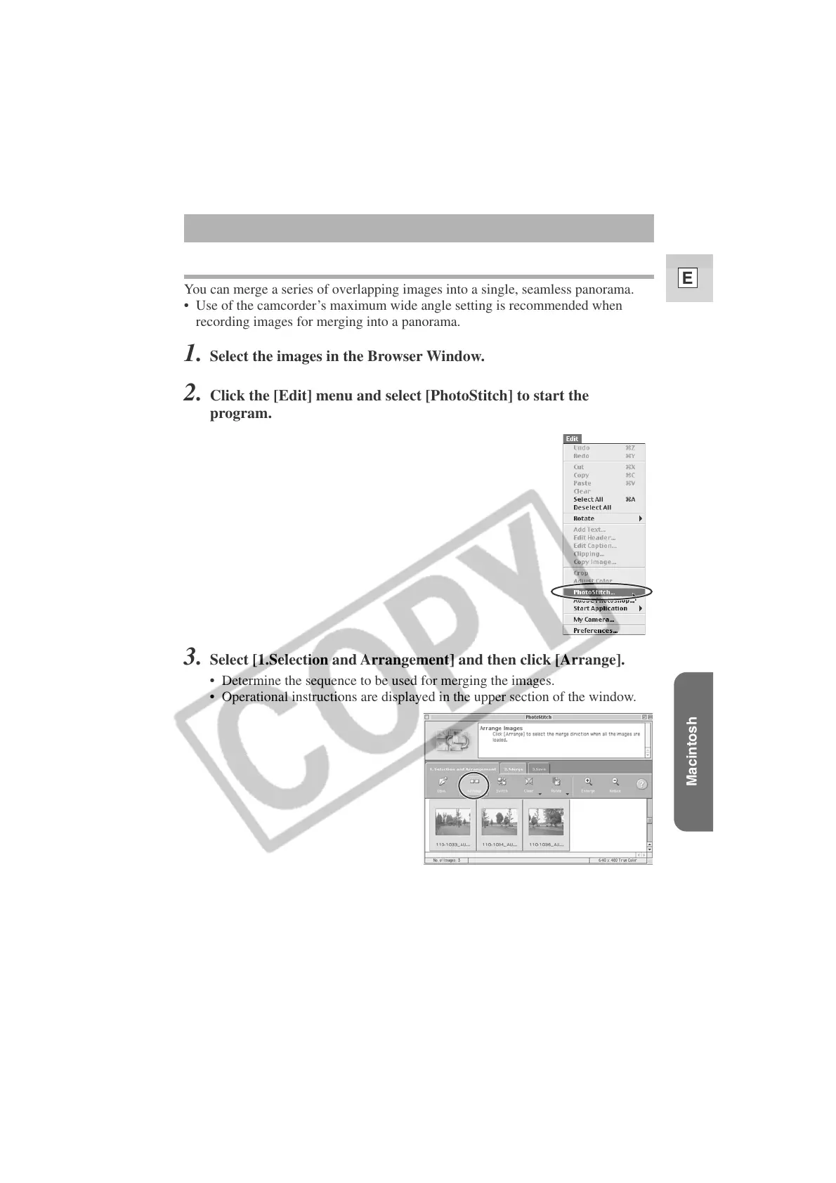 Click the [Edit] menu and select [PhotoStitch] to start the