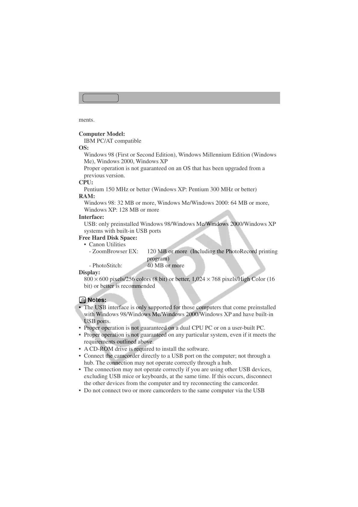 - ZoomBrowser EX: 120 MB or more (Including the PhotoRecord printing