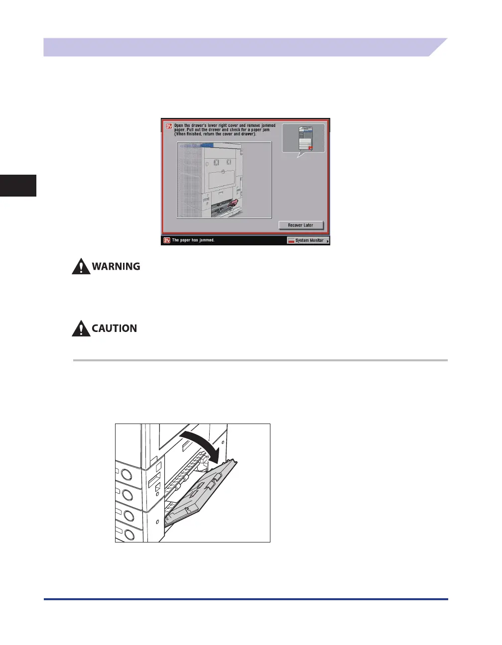 When removing jammed paper, take care not to cut your hands on the edges of the paper.