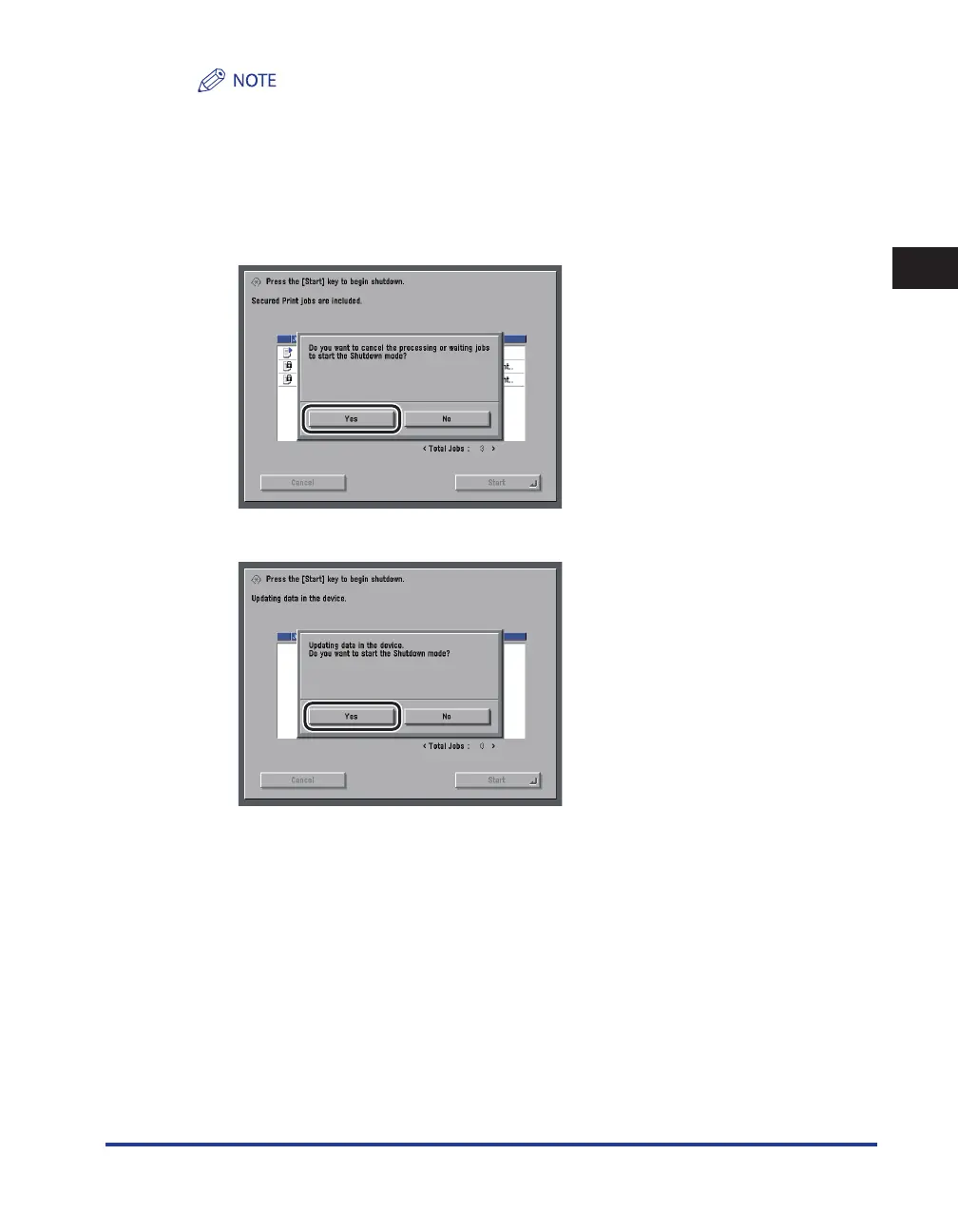 All of the jobs on the confirmation screen being processed or waiting to be processed are canceled. The