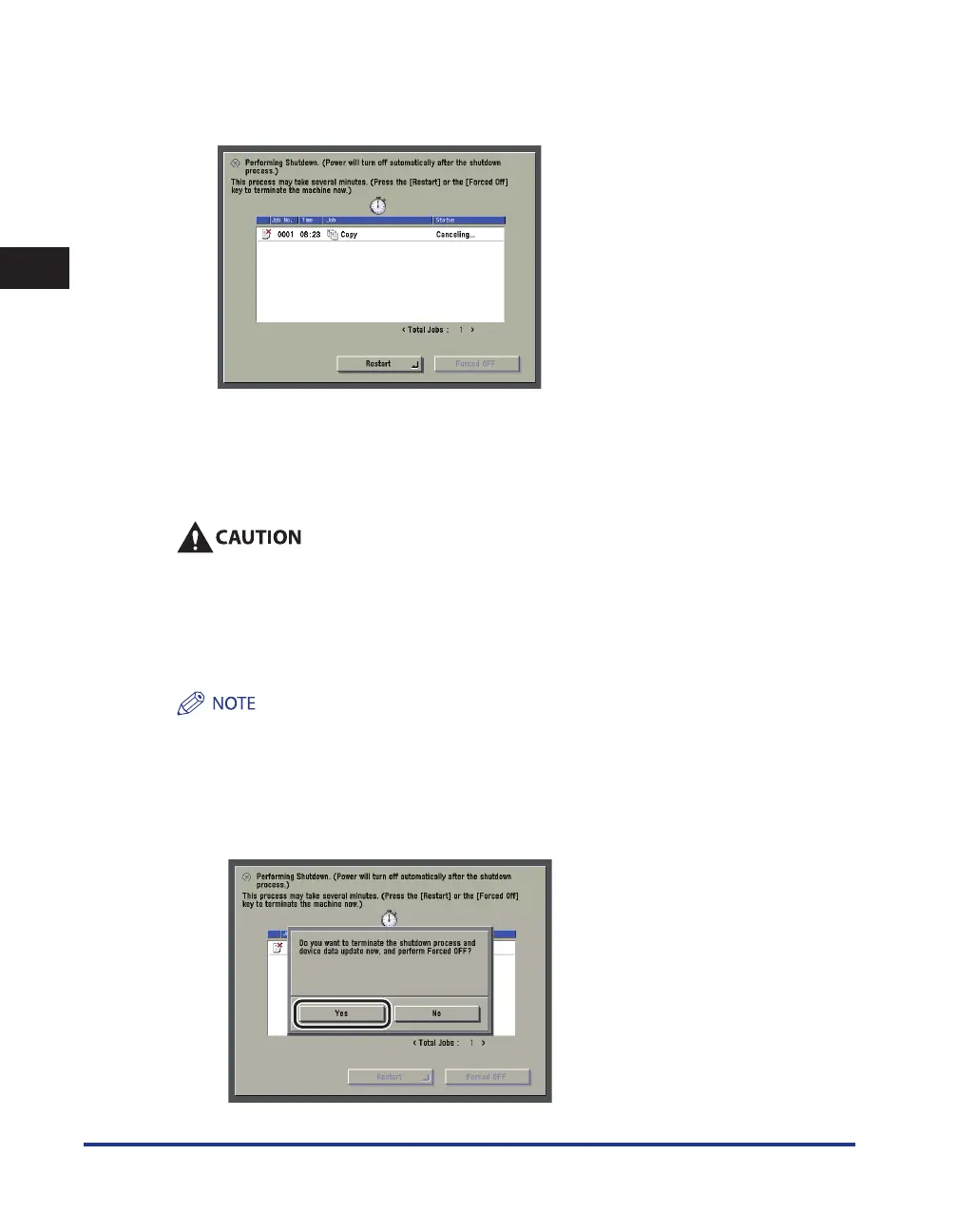 The screen below is displayed when you press [Forced Off] in any of the following cases.