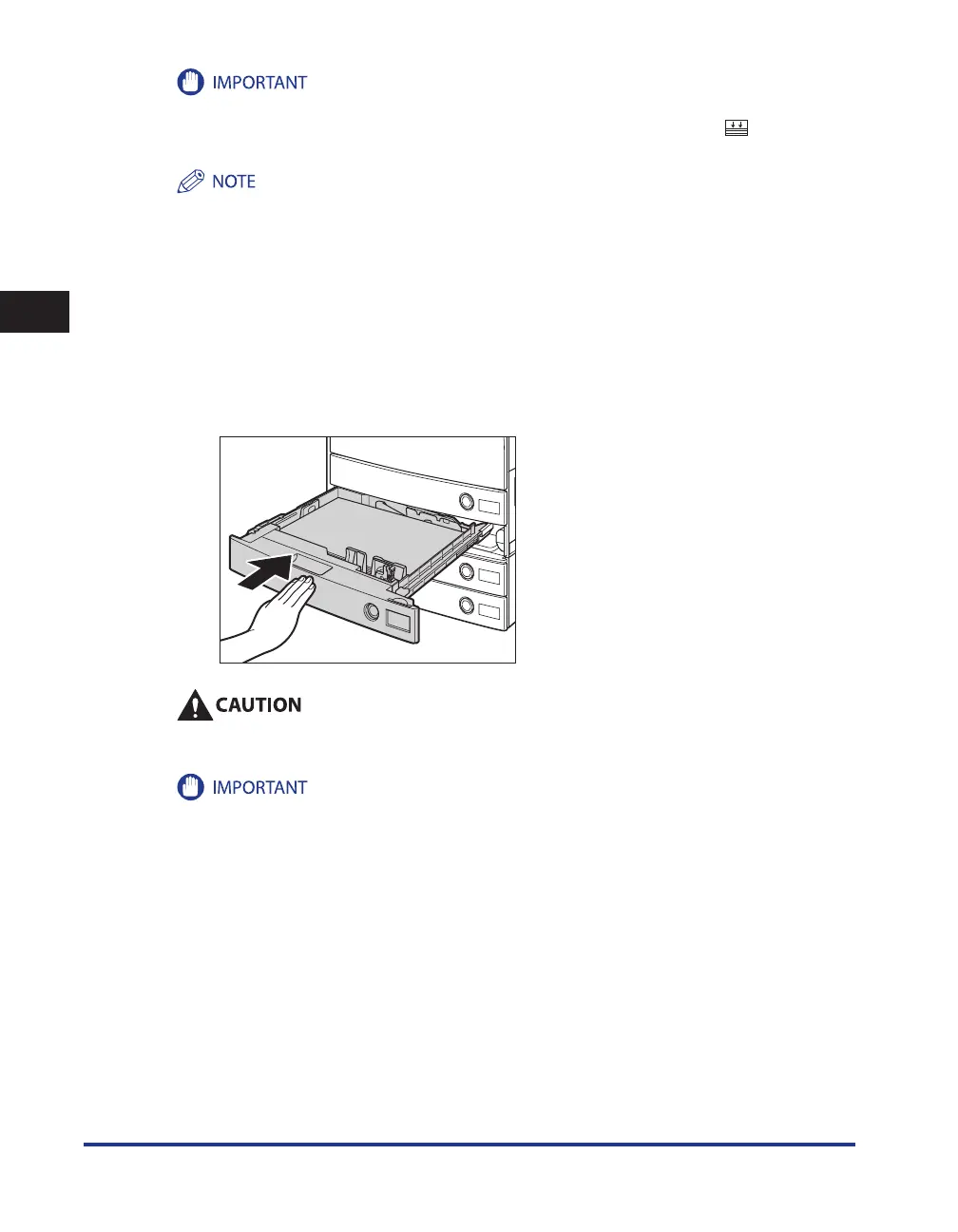 When returning the paper drawer to its original position, be careful not to get your fingers