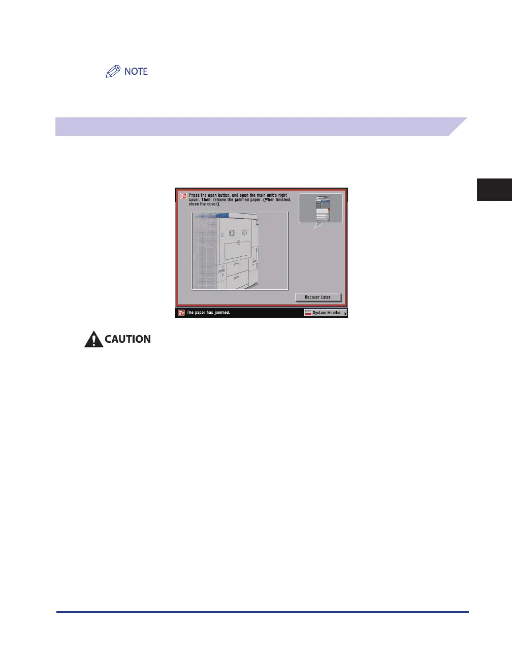 paper jam is entirely cleared. For more information, see “Screens Indicating the Locations of Paper Jams,” on