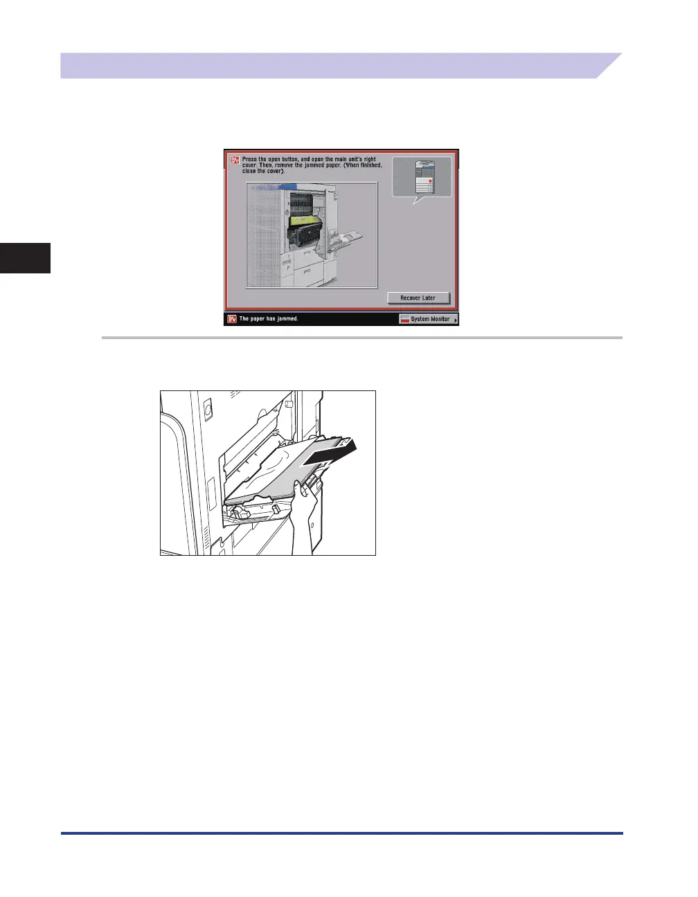 and the procedure that appears on the touch panel display, to remove the jammed paper.