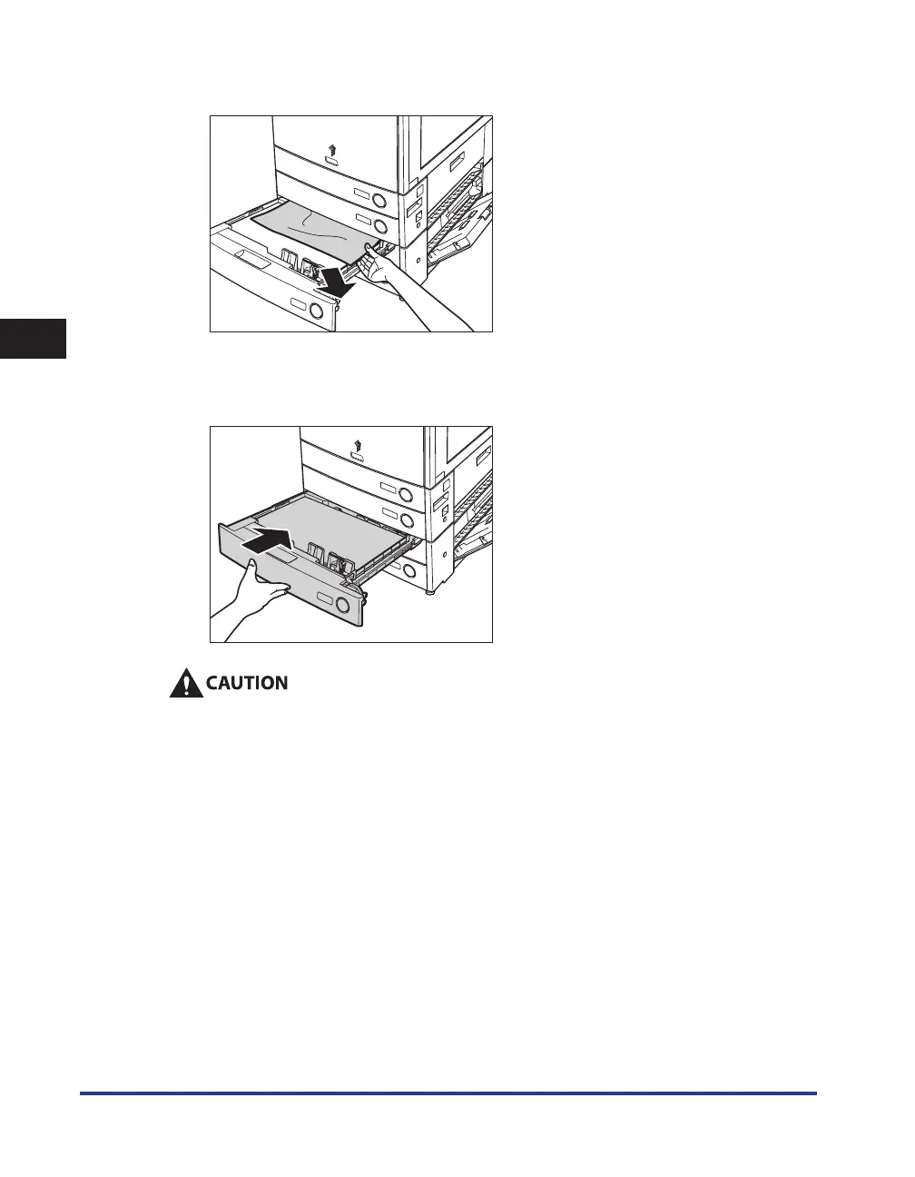 When returning the paper drawer to its original position, be careful not to get your fingers