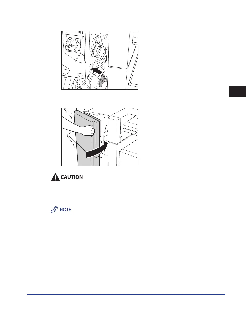 When closing the front cover of the finisher, be careful not to get your fingers caught, as this