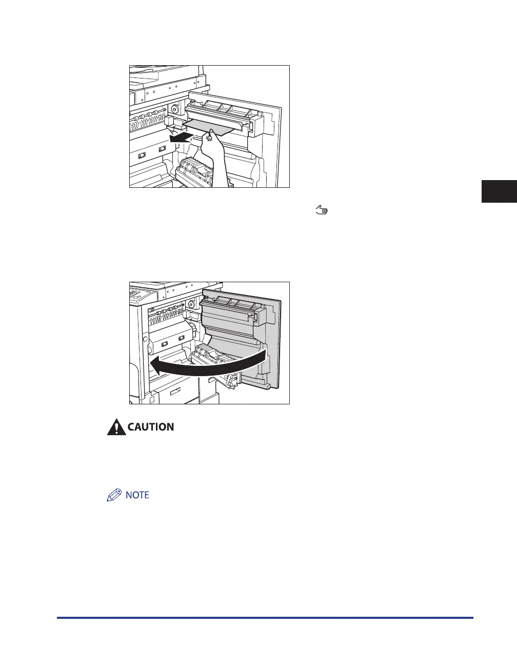 When closing the right cover of the main unit, be careful not to get your fingers caught, as