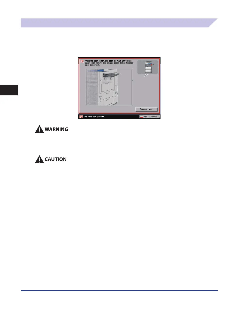 described below, and the procedure that appears on the touch panel display, to remove the jammed