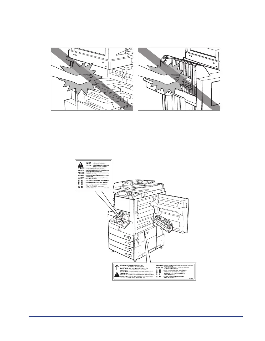 from the machine during any phase of user operation. Read the following remarks and instructions