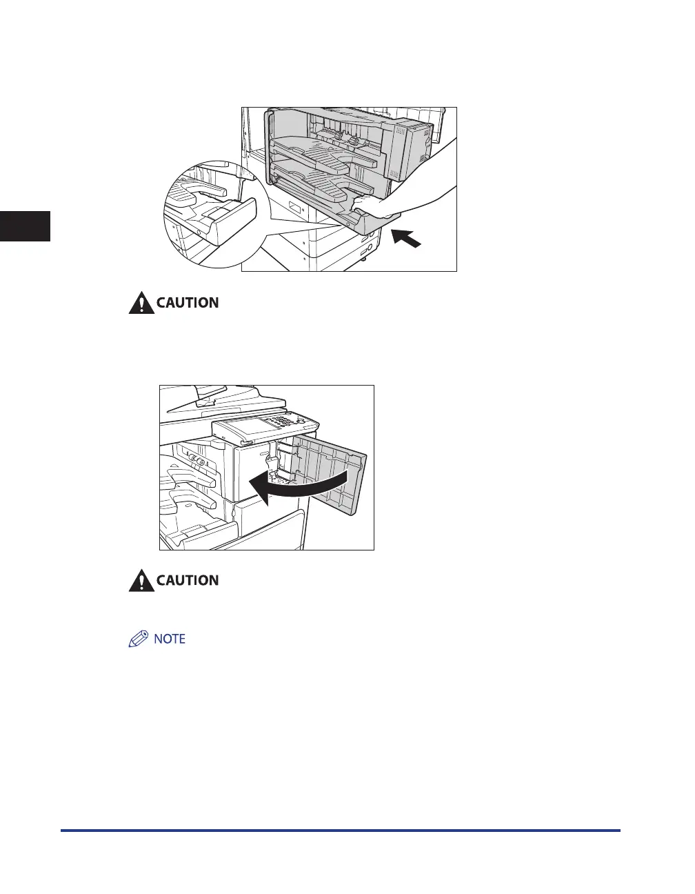 When closing the front cover of the finisher, be careful not to get your fingers caught, as this