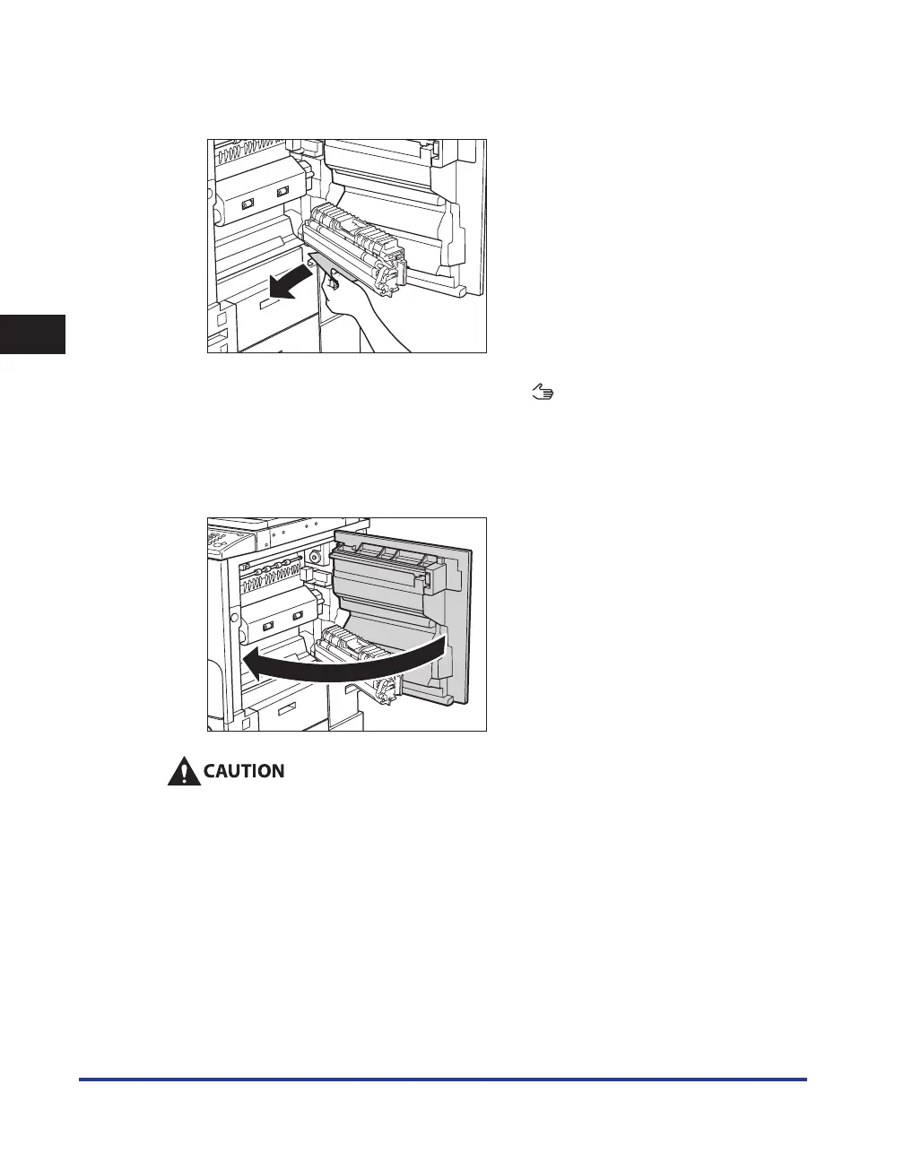 When closing the upper and lower right covers of the main unit, be careful not to get your
