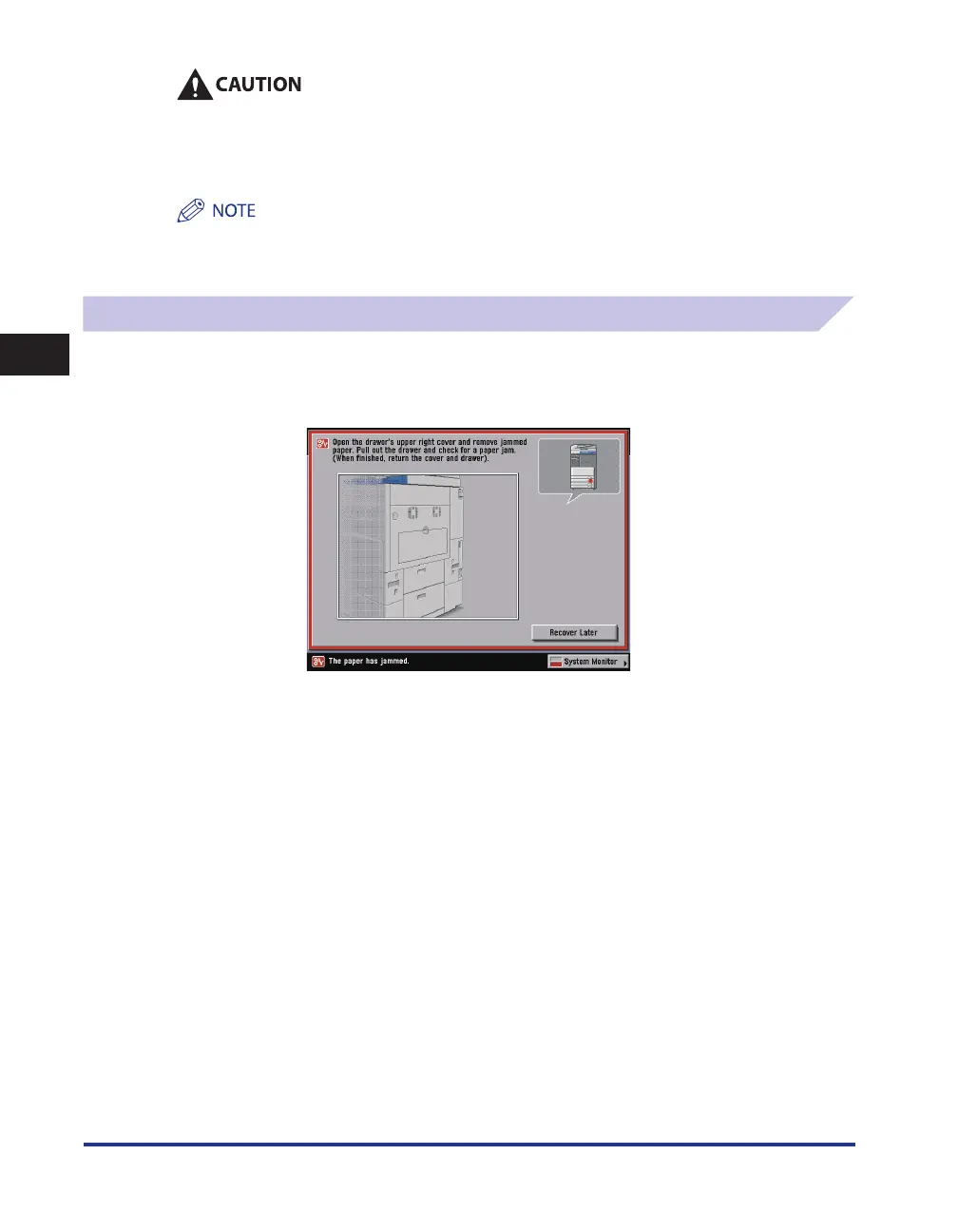 If a paper jam occurs inside Paper Drawer 2, a screen similar to the one shown below appears on the