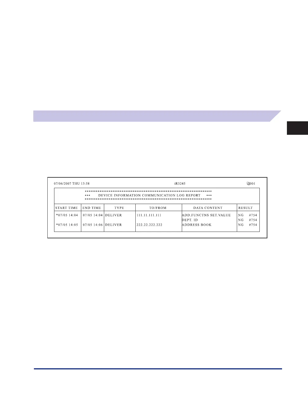 Prints the date and time (in 24-hour notation) when device information delivery/reception completed.