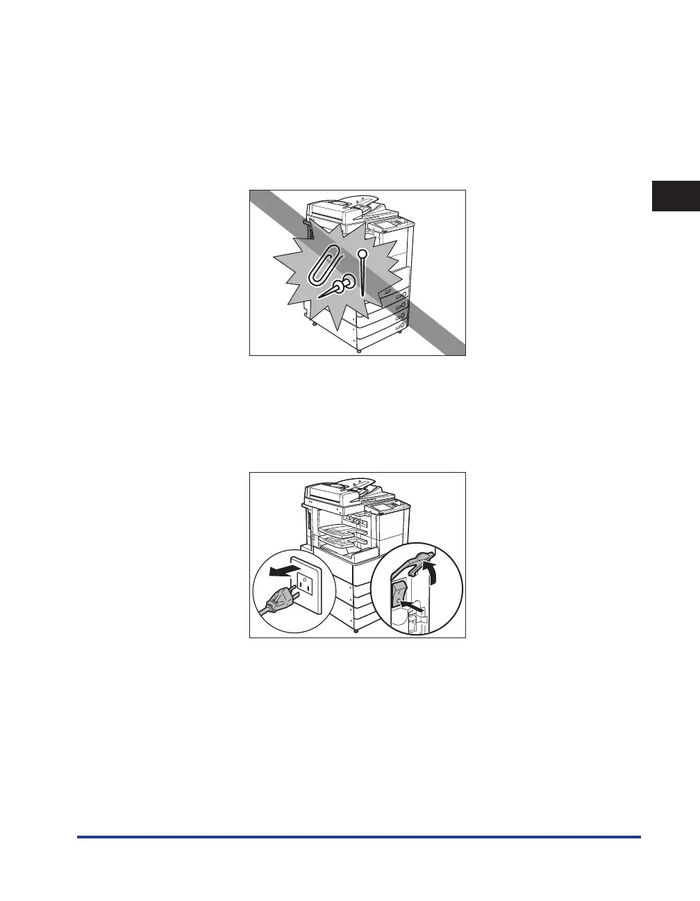 staples inside the machine. If a foreign object comes into contact with electrical