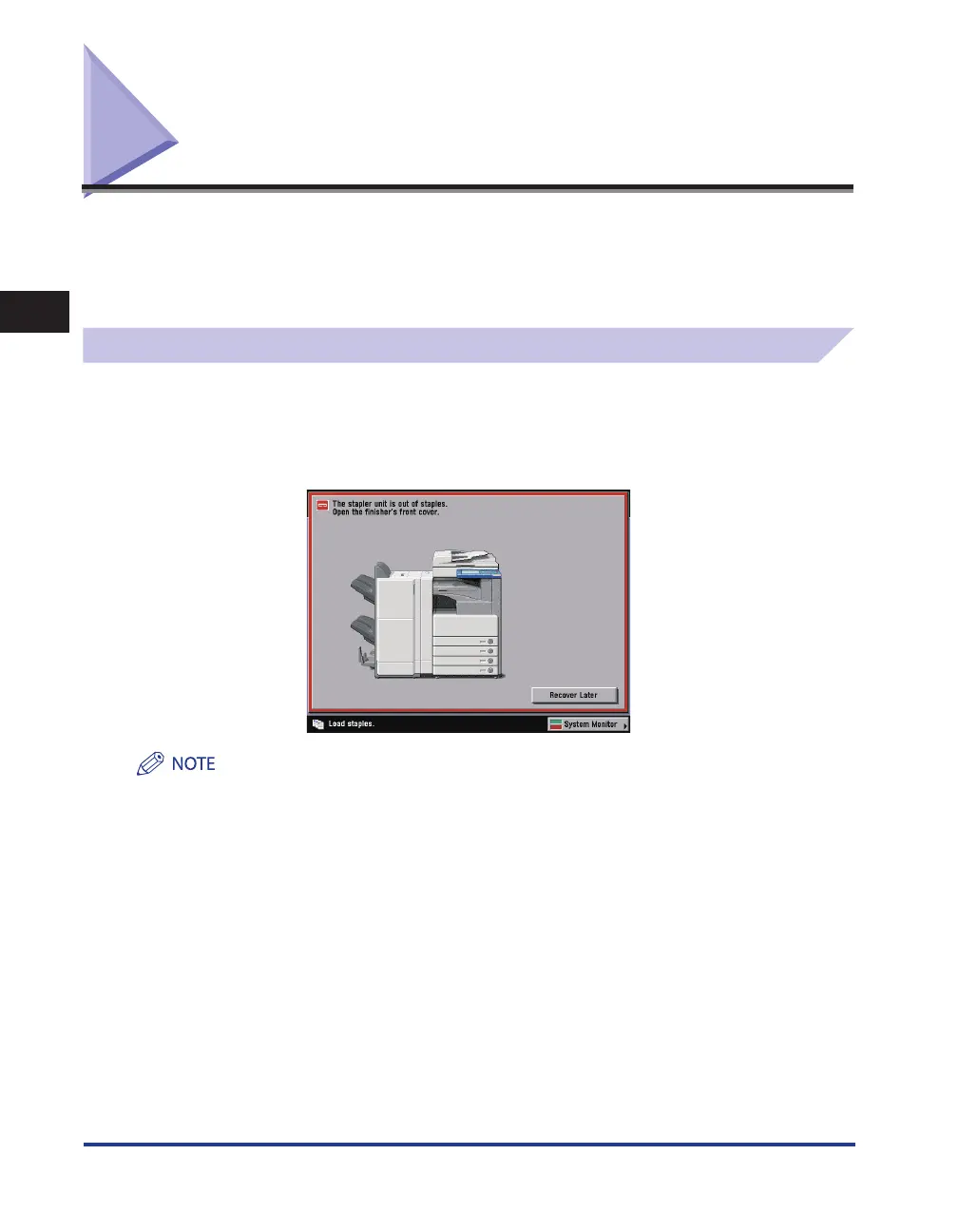 cartridge in the stapler unit must be replaced, a screen similar to the one shown below appears on