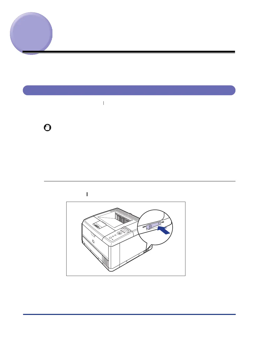 To use this printer, press " " of the power switch to turn the printer ON. After running