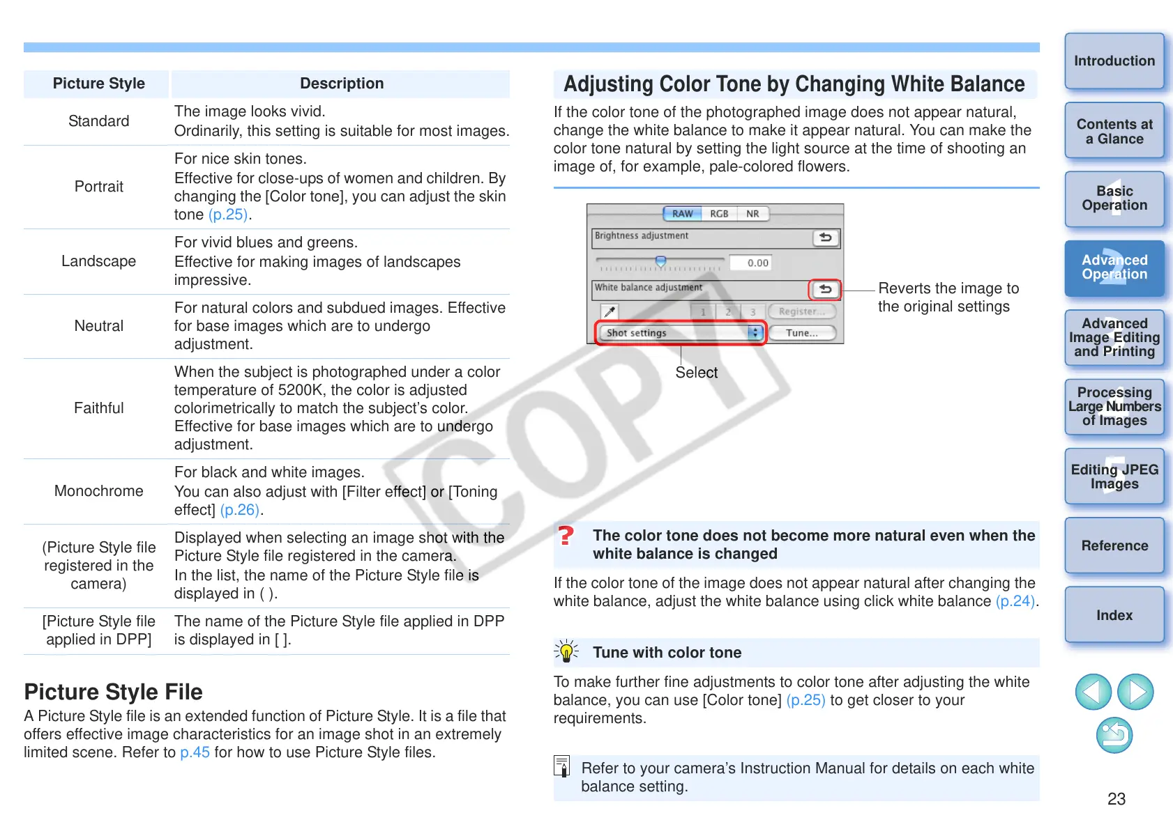 limited scene. Refer to p.45 for how to use Picture Style files.