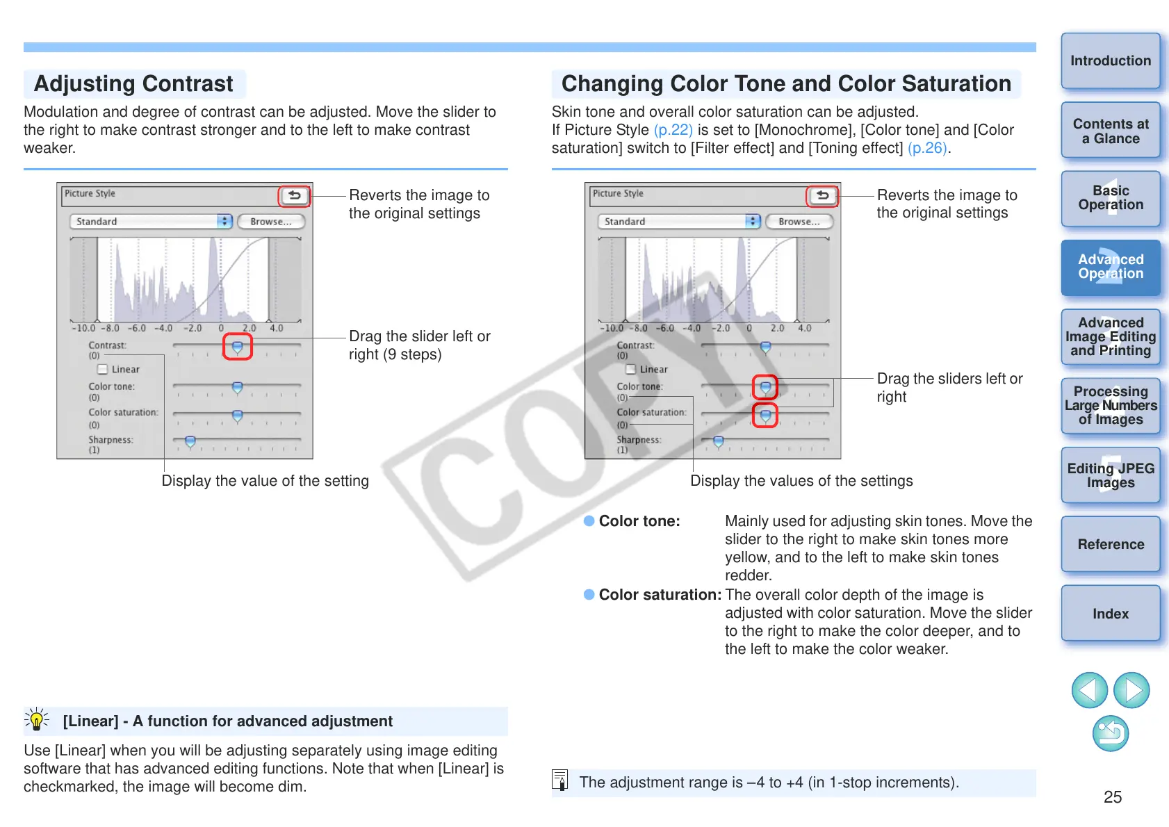 saturation] switch to [Filter effect] and [Toning effect] (p.26).