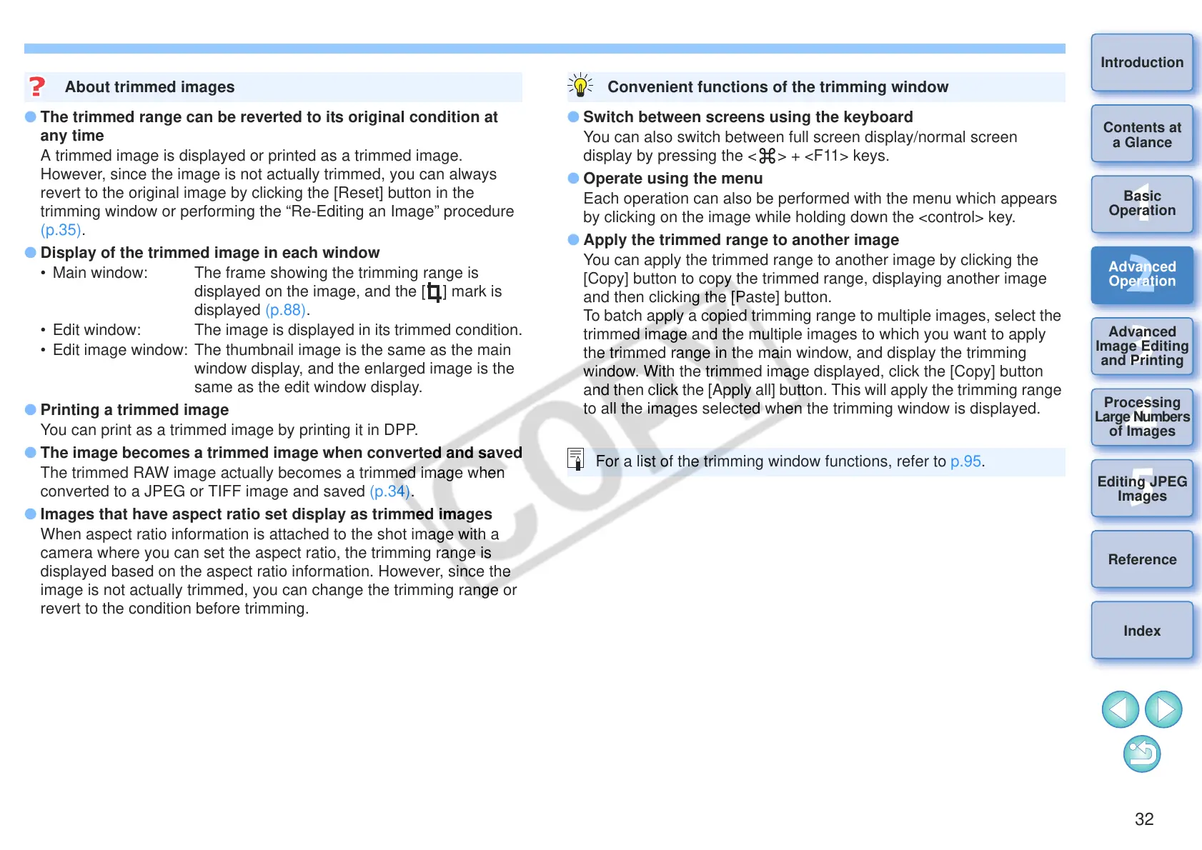trimming window or performing the “Re-Editing an Image” procedure