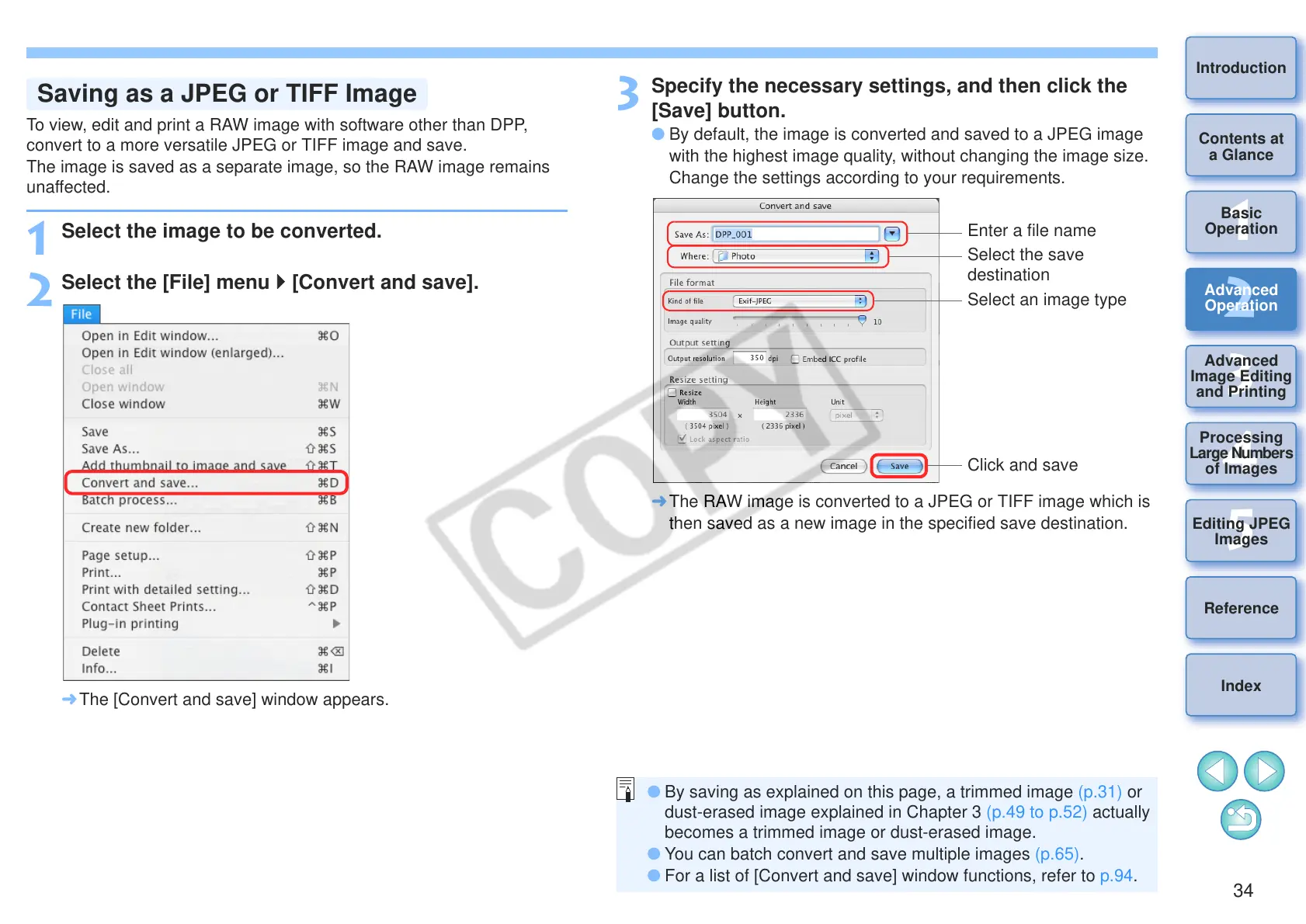 O You can batch convert and save multiple images (p.65).