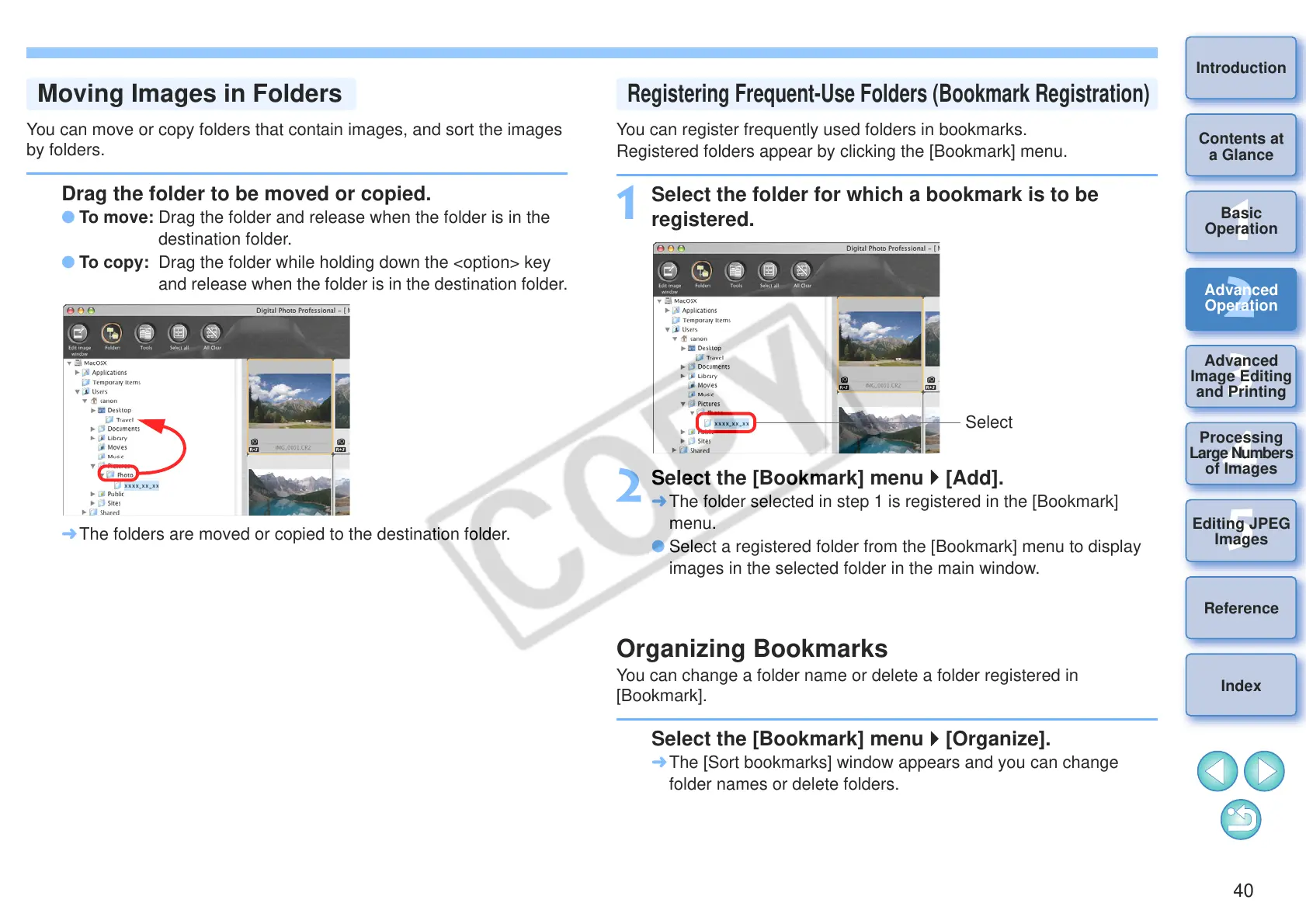 ¿ The folder selected in step 1 is registered in the [Bookmark]