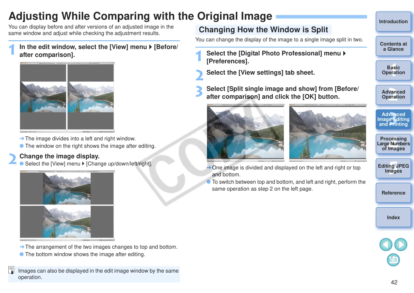 You can display before and after versions of an adjusted image in the