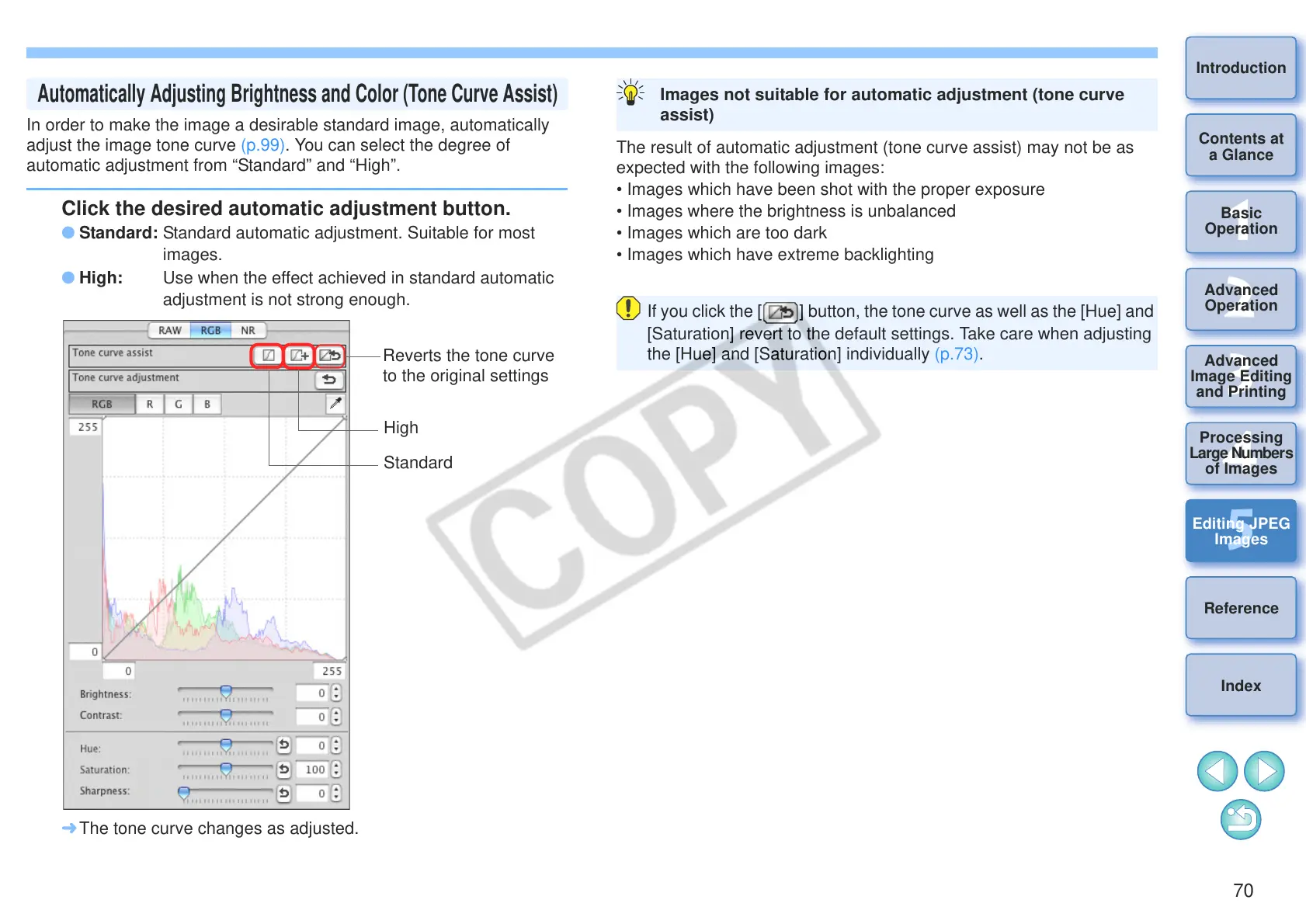 Automatically Adjusting Brightness and Color (Tone Curve Assist)
