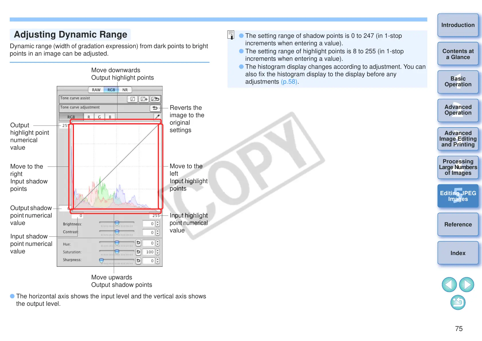 O The setting range of shadow points is 0 to 247 (in 1-stop