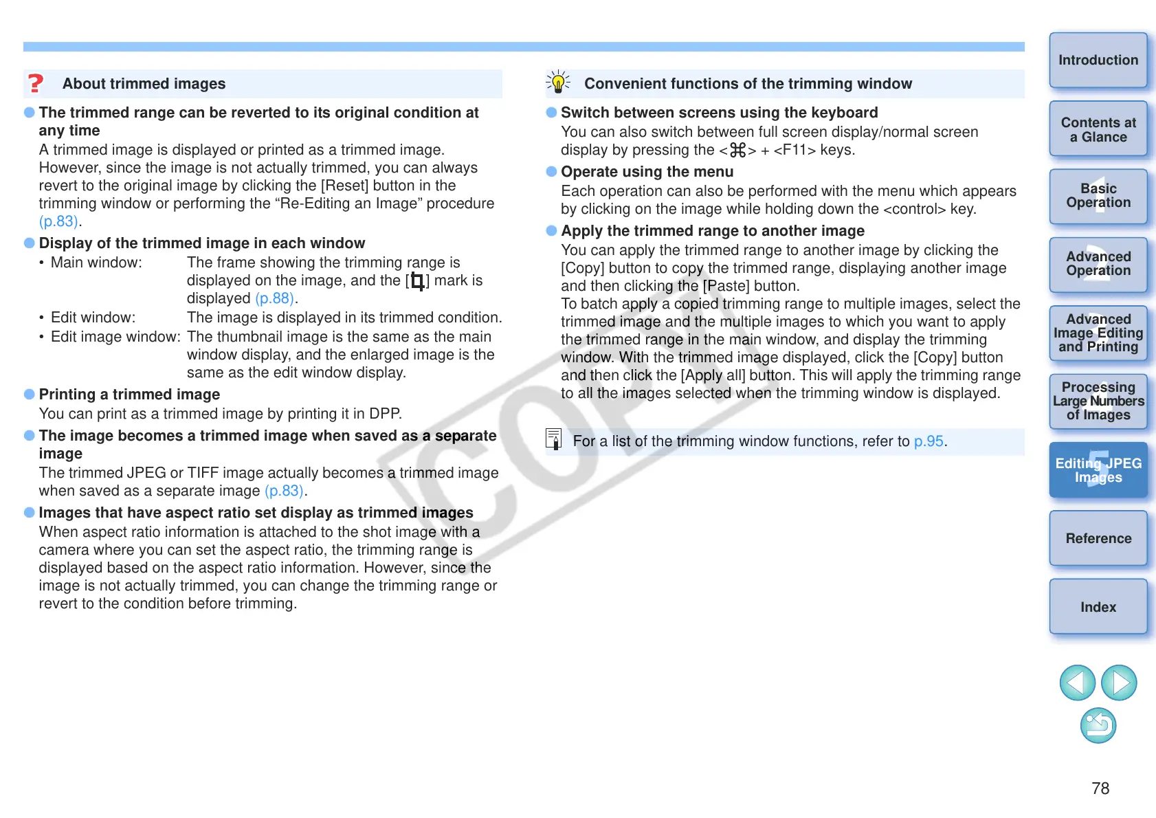 trimming window or performing the “Re-Editing an Image” procedure