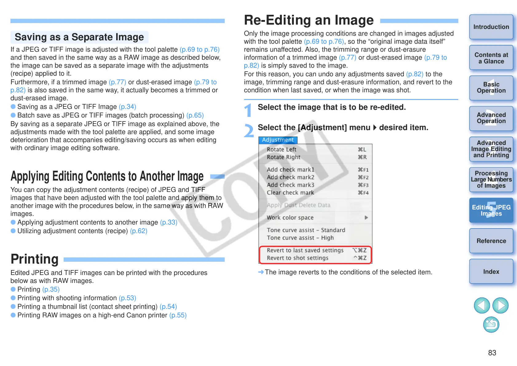 O Applying adjustment contents to another image (p.33)