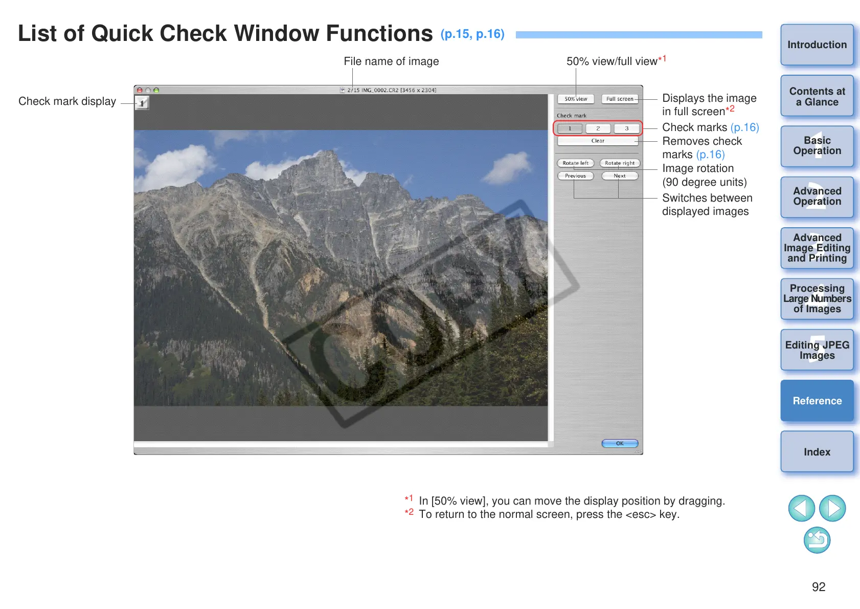 Canon 40D - EOS 40D DSLR - List of Quick Check Window Functions; Index