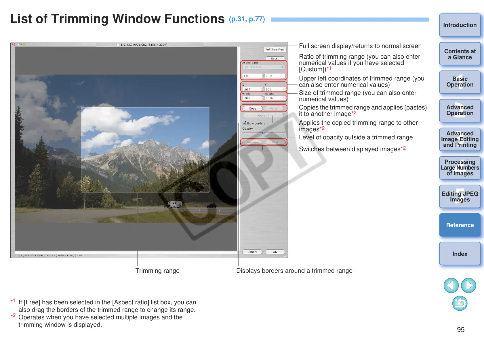 If [Free] has been selected in the [Aspect ratio] list box, you can
