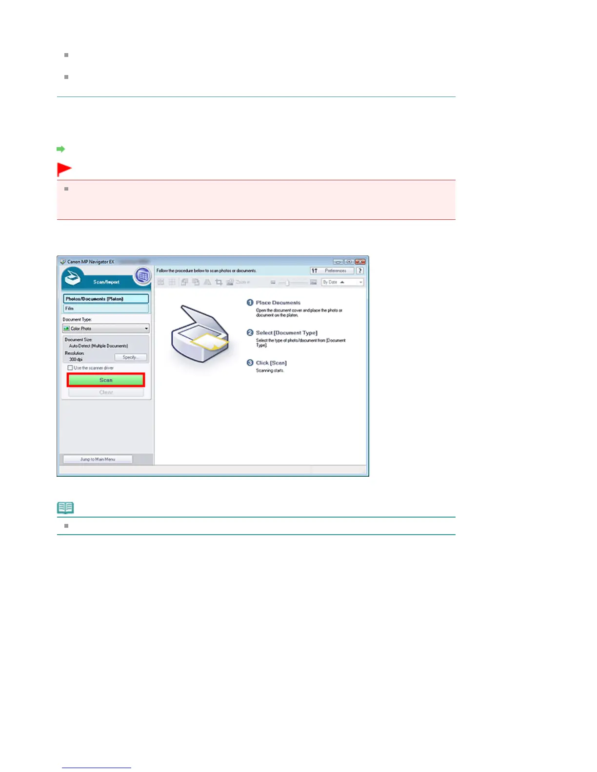 the arrow (alignment mark) of the Platen and specify the document size in the Scan Settings