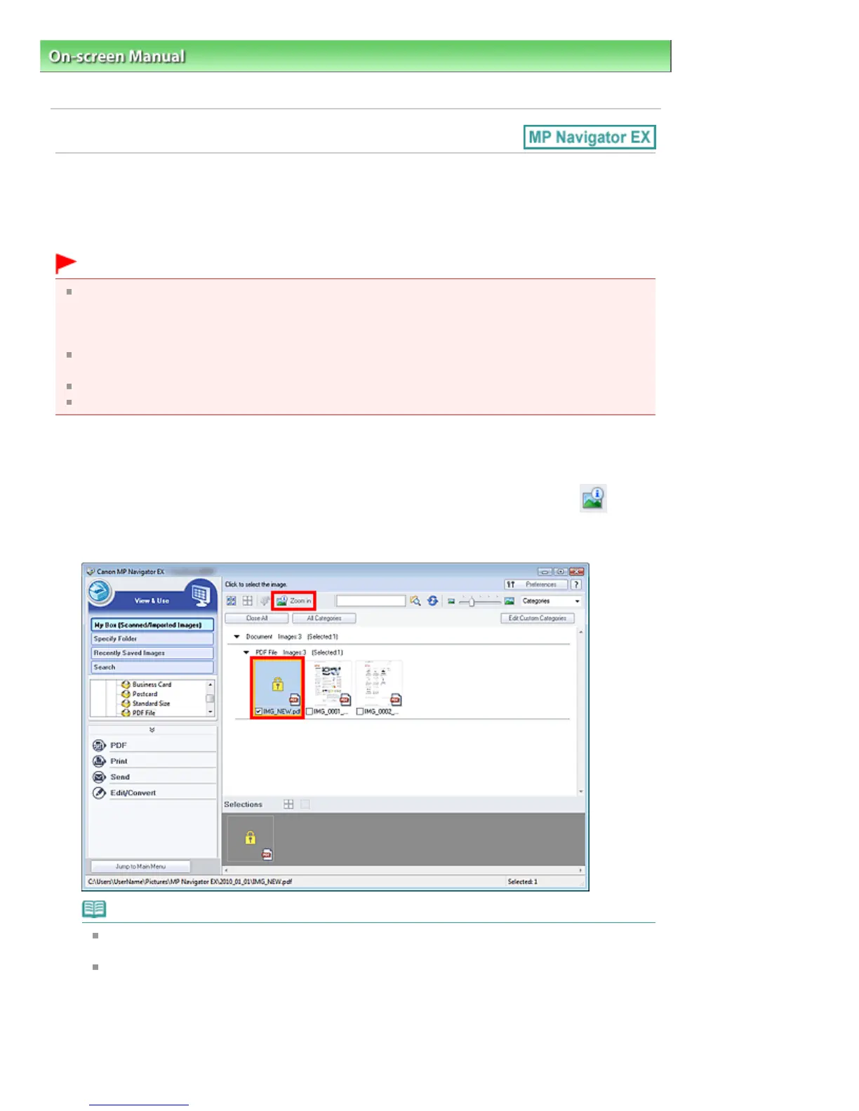 You can open, edit or print only PDF files whose passwords were set with MP Navigator EX. You