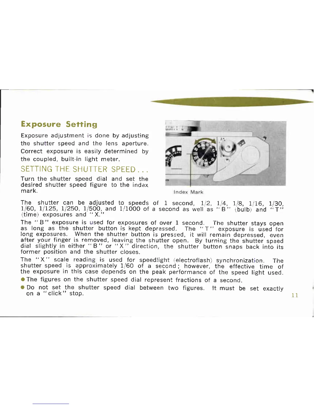 Canon 7 - Exposure Setting; SETTING THE SHUTTER SPEED