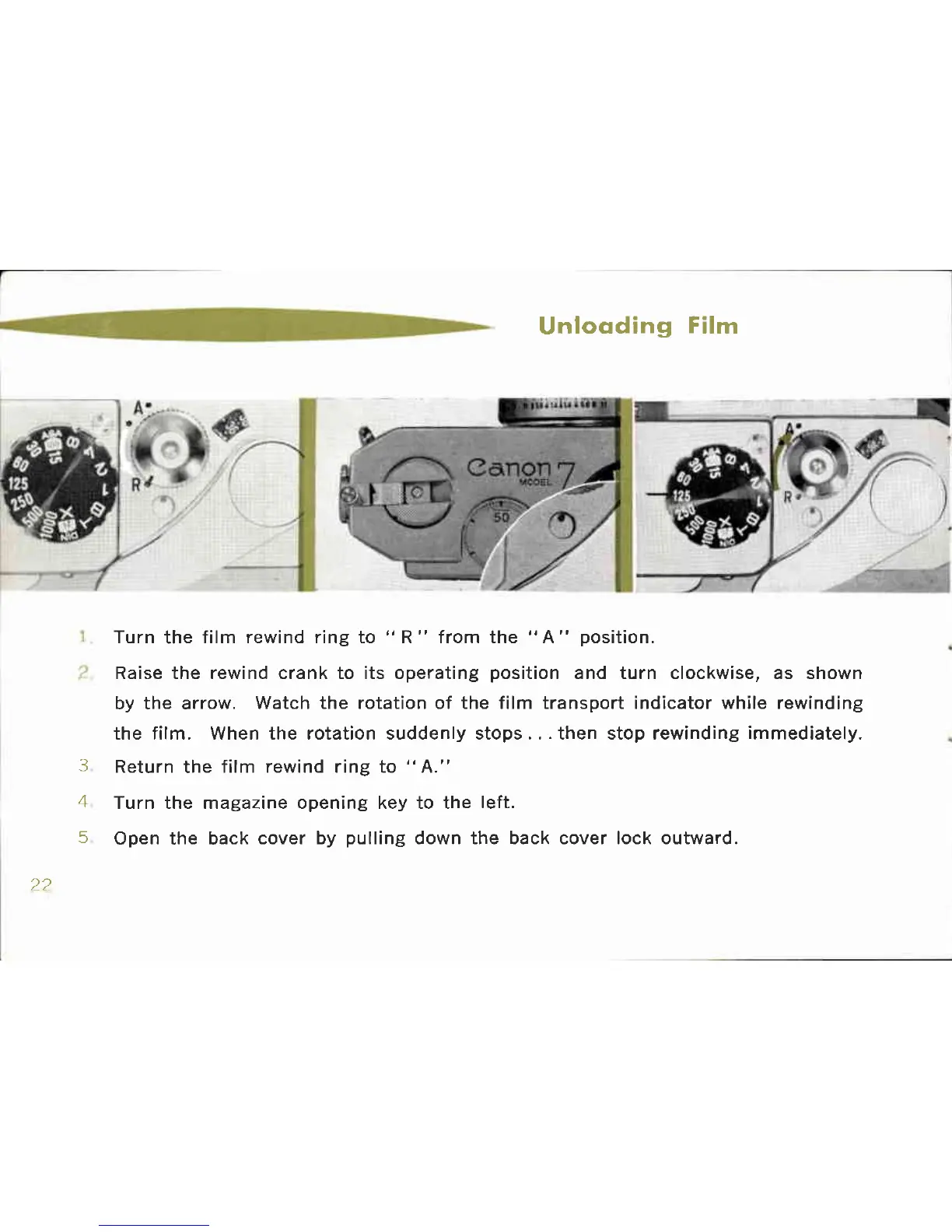 Canon 7 - Unloading Film