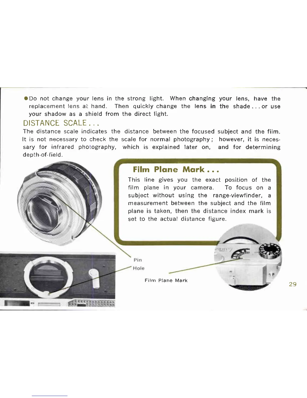 Canon 7 - DISTANCE SCALE; Film Plane Mark