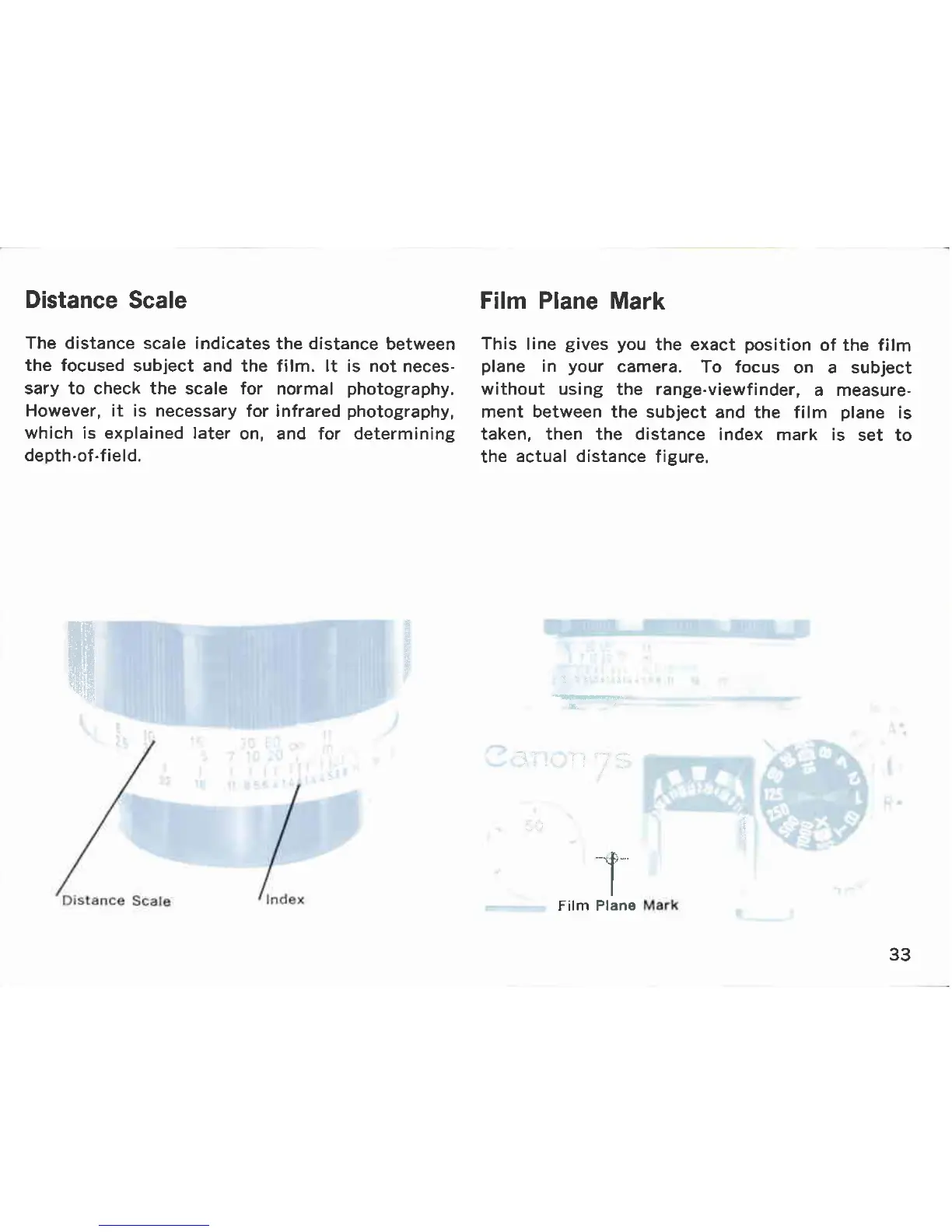 Canon 7S - Distance Scale; Film Plane Mark
