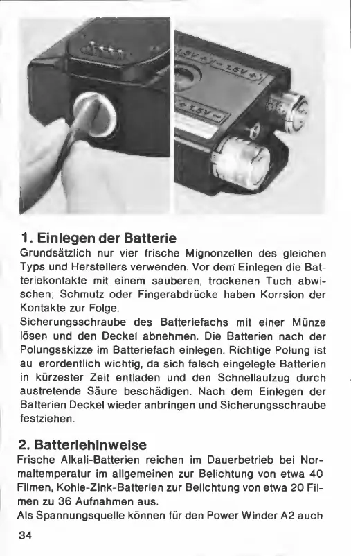 Canon A2 - Einlegen der Batterie