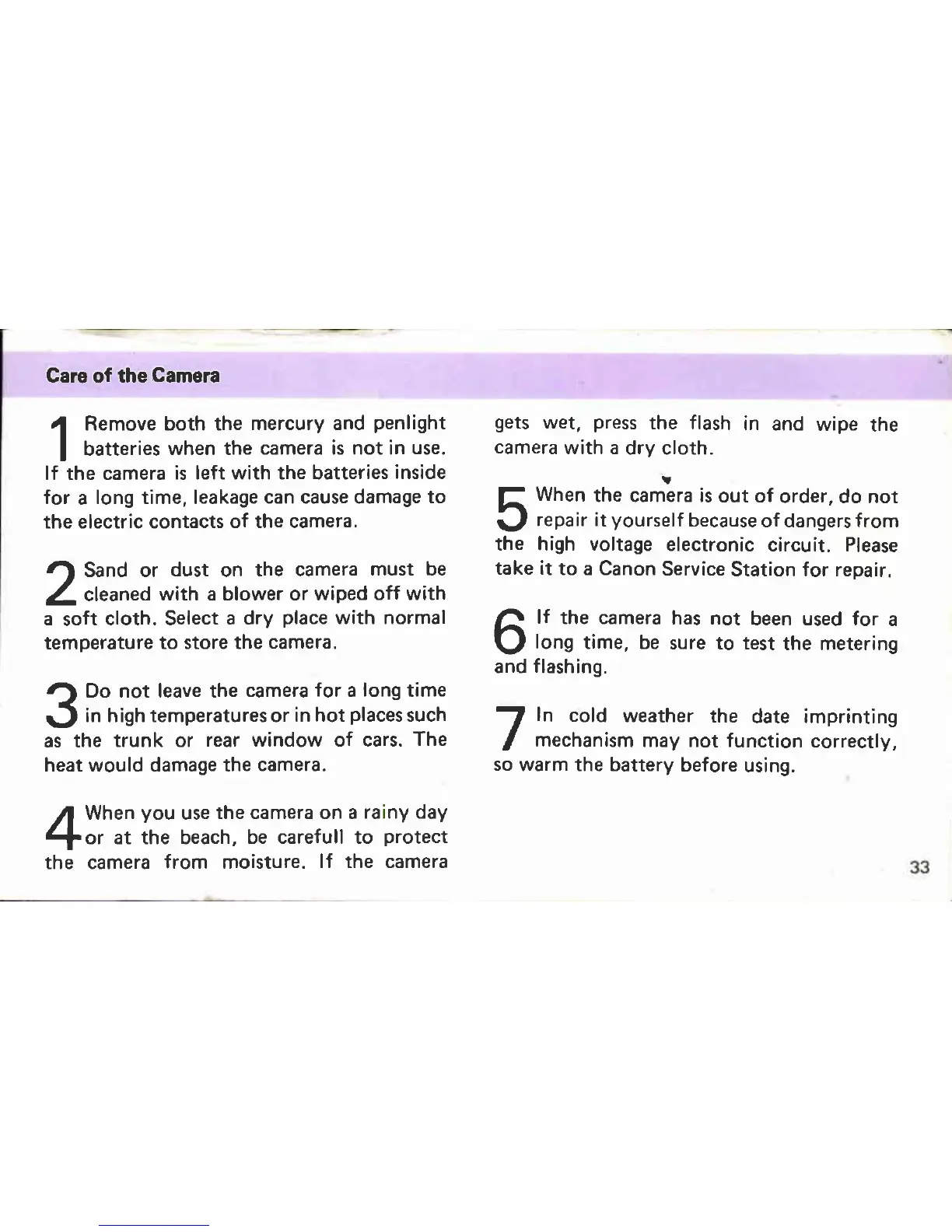 Canon A35 Datelux - Care of the Camera