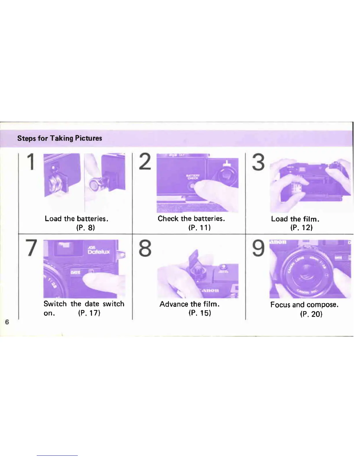 Canon A35 Datelux - Steps for Taking Pictures