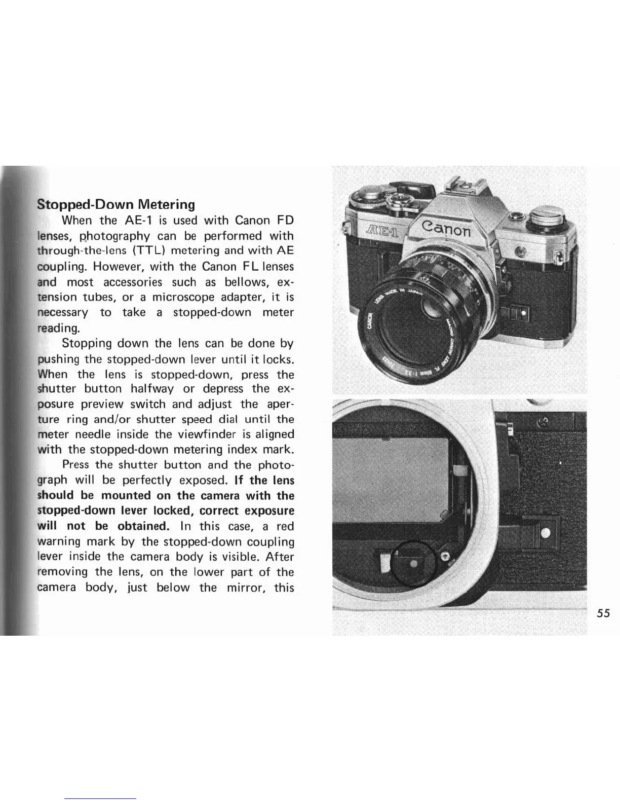 stopped-down lever locked, correct exposure