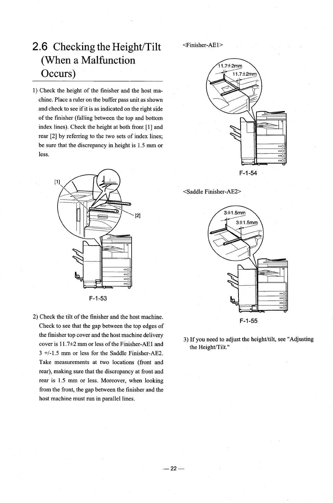 +I-1.5 mm or less for the Saddle Finisher-AE2.