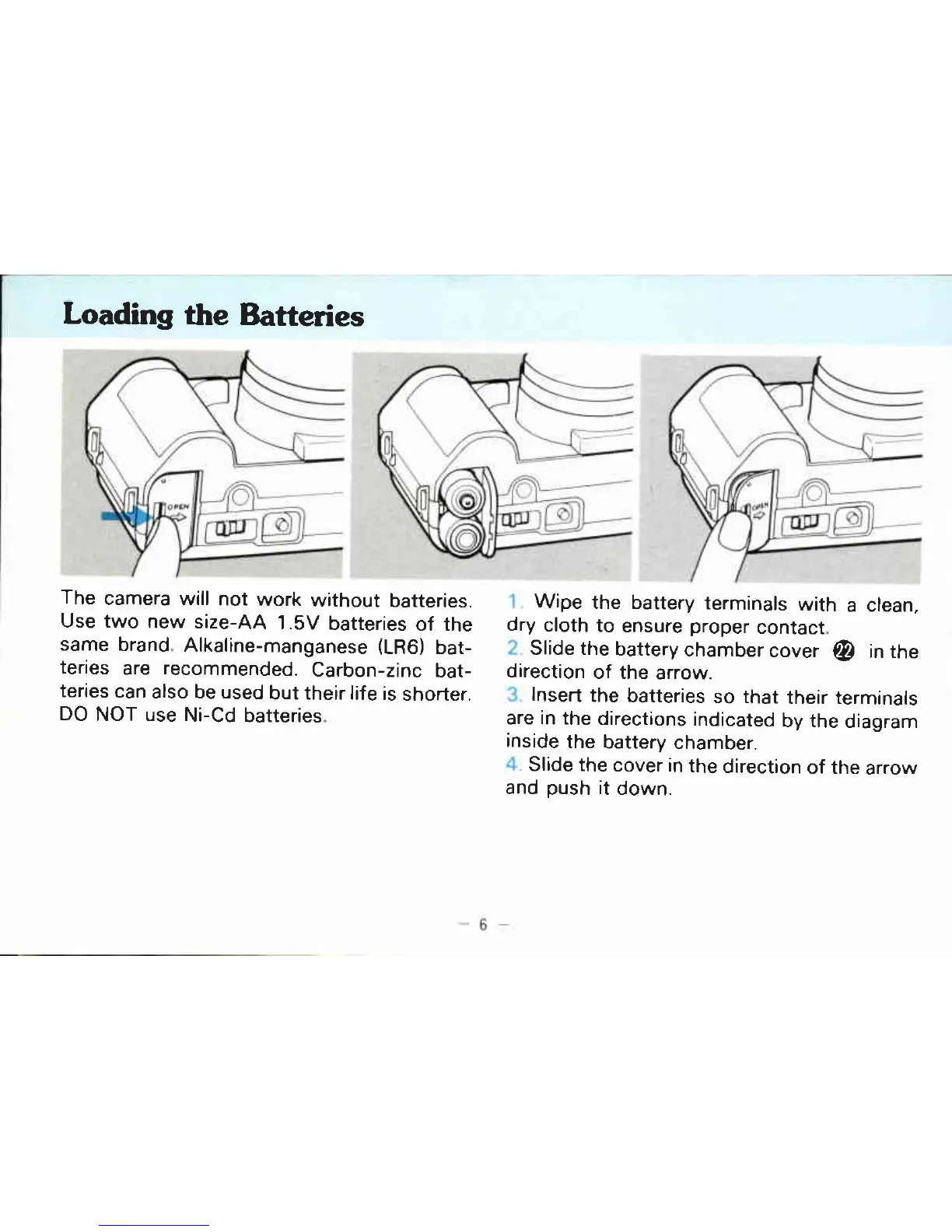 Canon AF 35 ML - Loading the Batteries